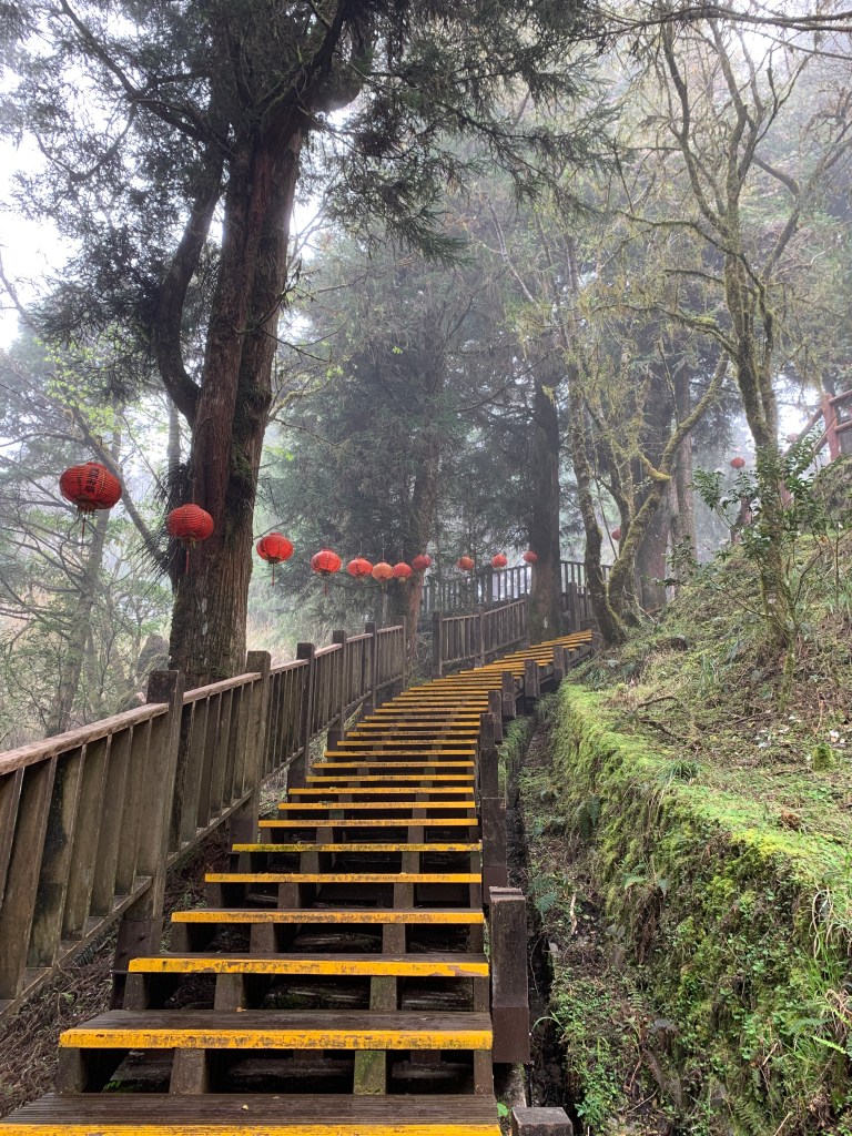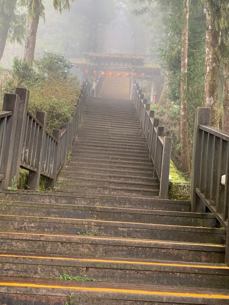 飯後我們就出發到太平山,這天天氣不好,下著細雨,霧又多,雖然開到一半有想說是否不要上山了,但想說我從來沒來過太平山,還是開上去。先到了雲海咖啡廳吃了一片吐司後開始往鎮安宮爬。鎮安宮在日本時代是神社,通過以前的鳥居時都有種穿過歷史的感覺。
