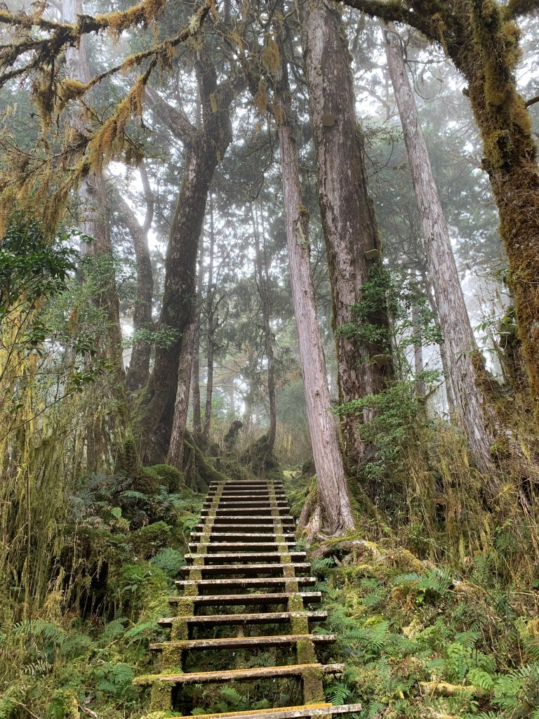 雖然爬到頂時因為濃霧而無法看到大霸尖山的美景,但沿途上看到的原始林已經大飽我的眼福了。