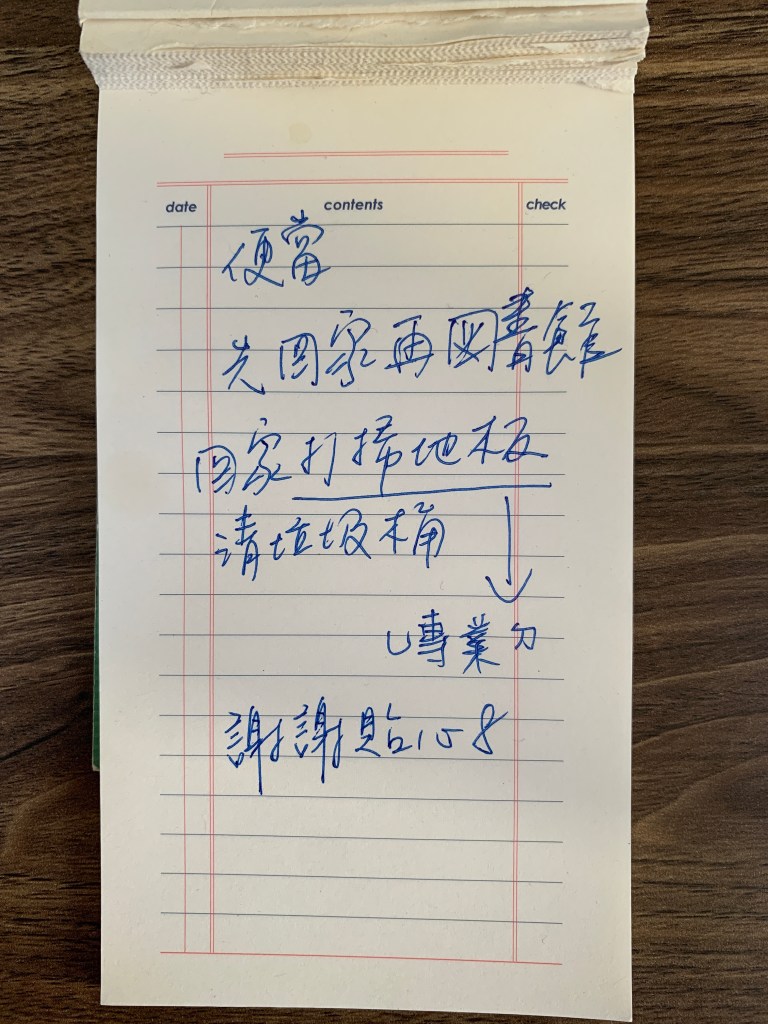 平常和先生都會在待辦事項清單上對話,覺得這種互動很有情調。