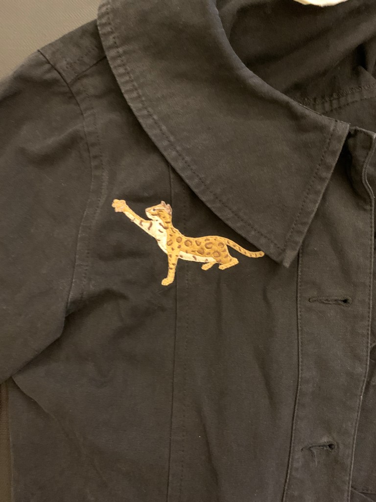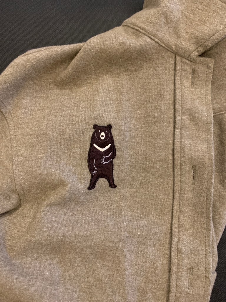 把石虎和台灣黑熊的刺繡縫上外套了!