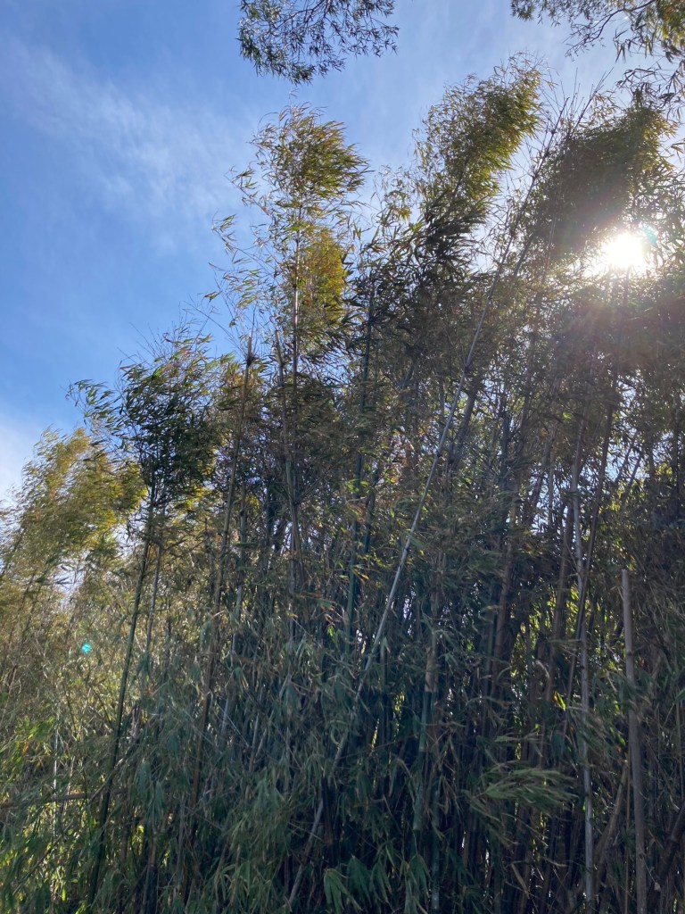 因為海拔不高吧,所以景觀其實沒什麼變化,植物就竹子最多,這是我第一次看到這麼多又這麼高大的竹子,隨風搖曳時會發出gi-gwai gi-gwai的聲響,那種聲音很詭異,我阿嬤非常討厭竹子的聲音。有種陰森的感覺吧。