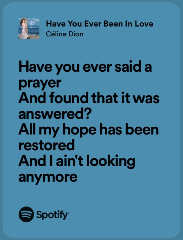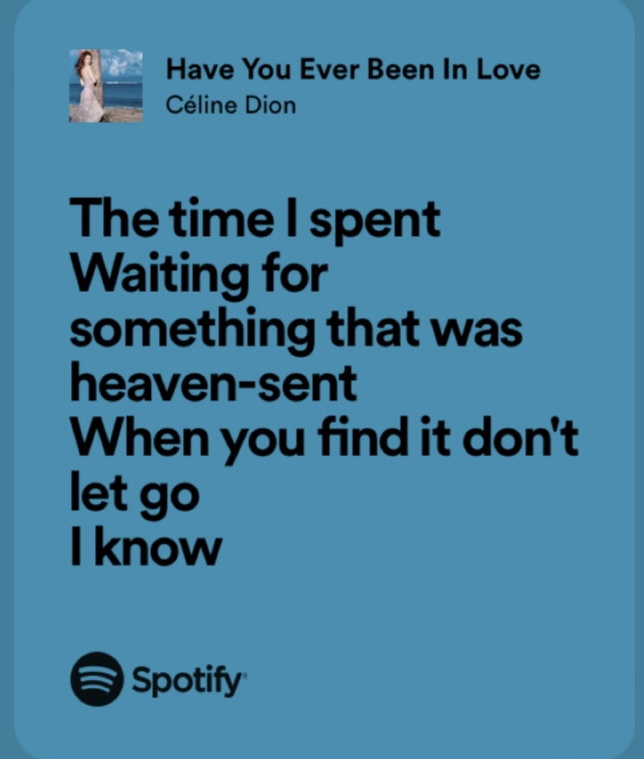 One particular song, “Have You Ever Been In Love" by Céline Dion, really struck a chord with me.