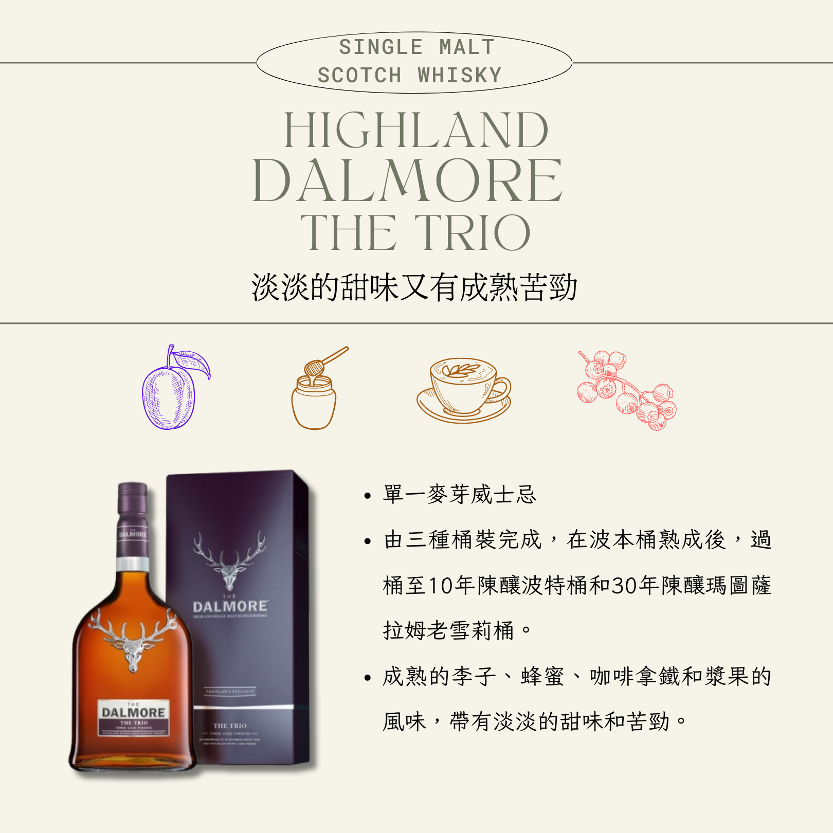 以下是我彙整的這三種威士忌的小介紹,三種口感也十分不同,其實很好猜。