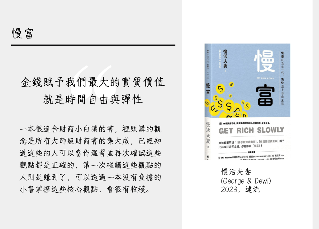 This book is perfect for financial novices. It encapsulates the concepts found in all the top-tier financial literacy books. For those who are already familiar with these concepts, it serves as a refresher, reaffirming the correctness of these viewpoints. However, for those encountering these ideas for the first time, it’s a real boon. Through this lightweight book, readers can grasp these core concepts without feeling overwhelmed and gain valuable insights.
