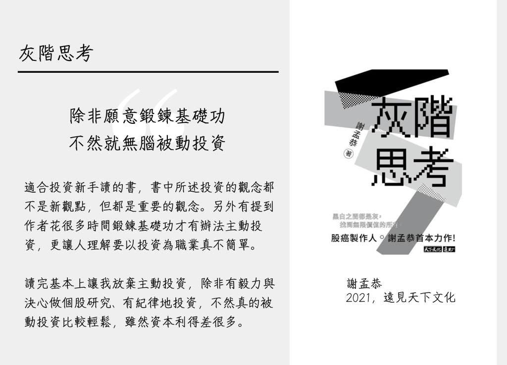 After reading, I basically gave up active investing. Unless one has the determination and discipline to conduct stock research and invest systematically, passive investing is indeed more relaxed, although the capital gains are much lower.