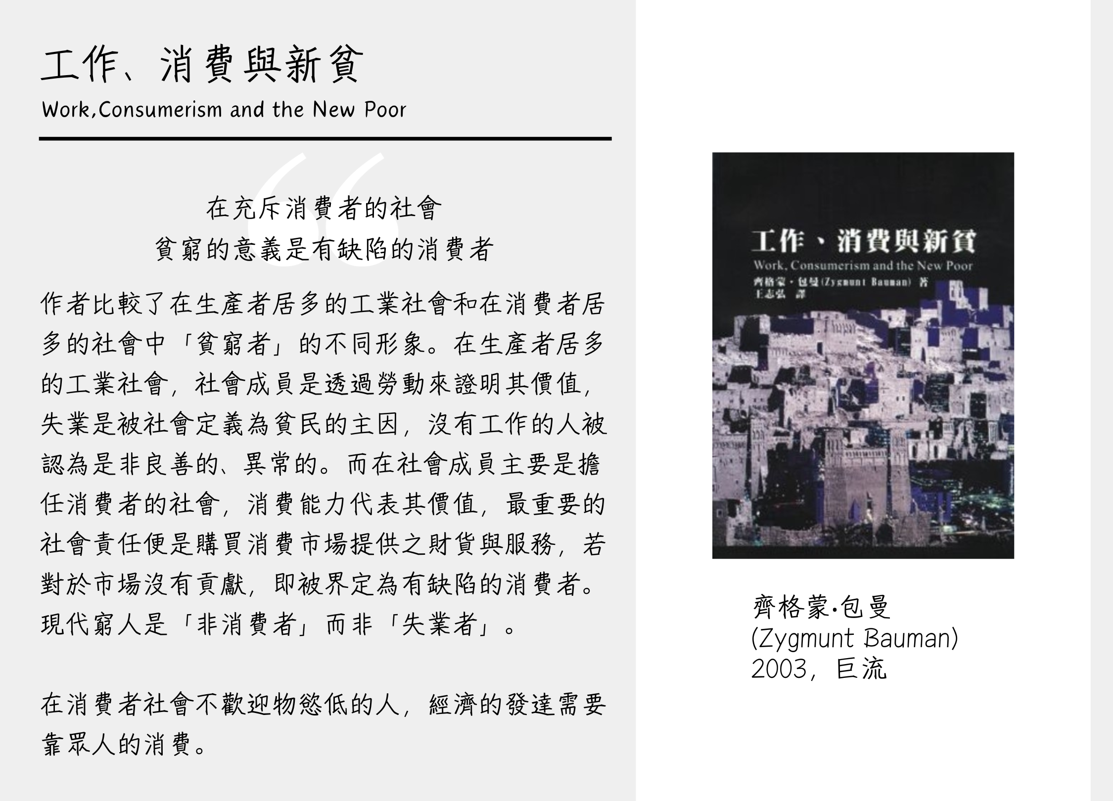 21.工作、消費與新貧 Work, Consumerism and the New Poor / Zygmunt Bauman