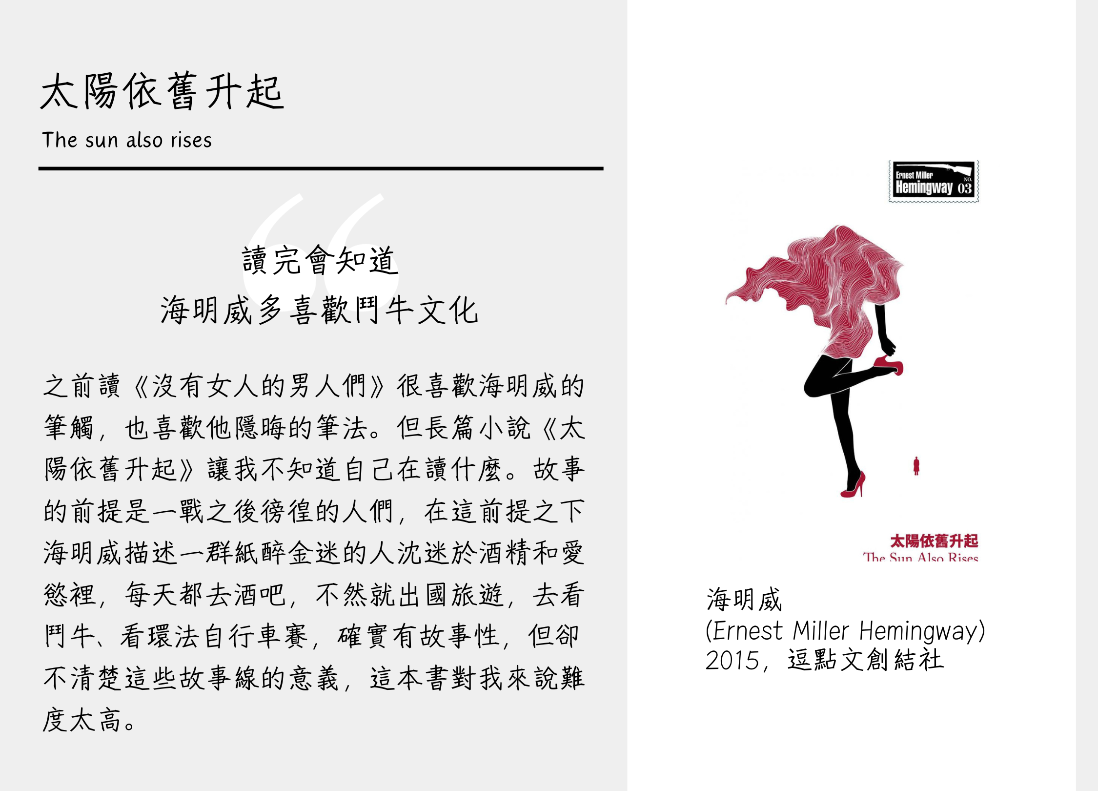 35.太陽依舊升起 The sun also rises / Ernest Miller Hemingway