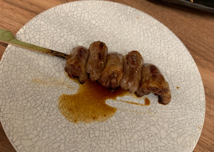 雞皮呢,是在這家店吃到最不滿意的一道,是我吃過最不好吃的雞皮,不脆又有很重的油味,是我們唯一吃剩的一道。